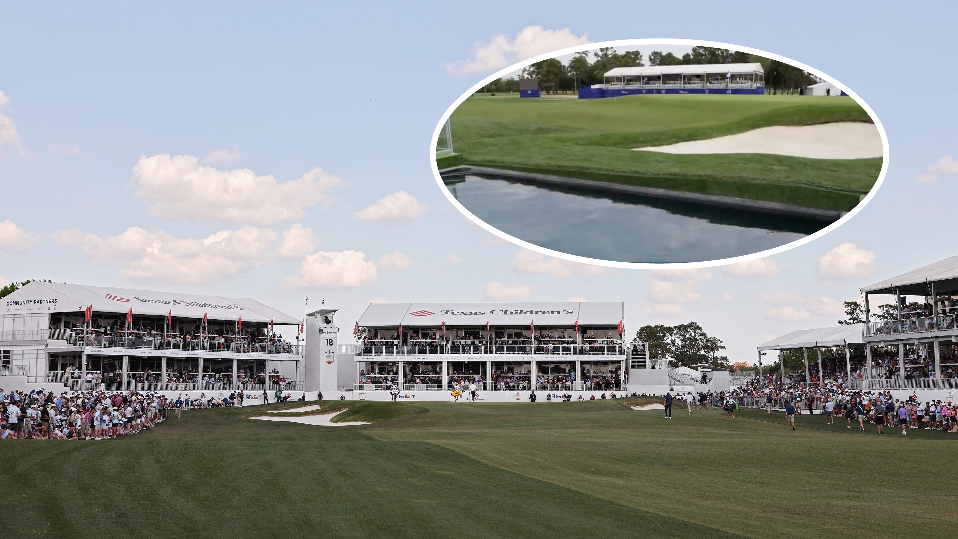 There is no natural water within close proximity of the 18th green at Memorial Park - which also hosted the PGA Tour's Texas Children's Houston Open recently - so tournament organizers had a 15-by-25-foot pool created which measures 4.5 feet deep.